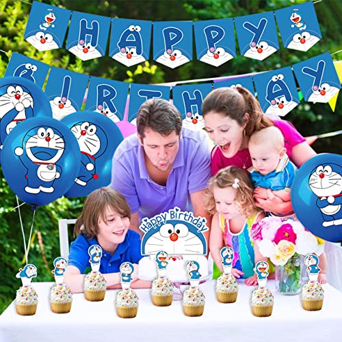 Doraemon Compleanno Decorazioni - simyron 38 pezzi Decorazioni per la Festa del Doraemon Compleanno set in blu, Doraemon Palloncini Compleanno feste bambina decorazioni