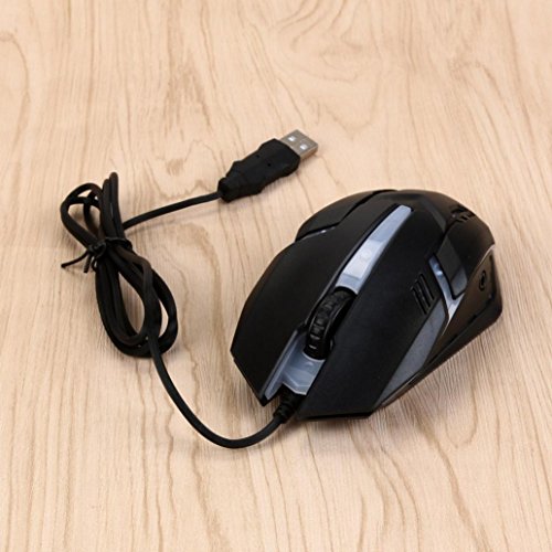 DoraMe Mouse Wired in metallo 6 pulsanti con ricevitore Nano ottico regolabile, 1600DPI dpi per giocatori gamer ufficio biblioteca, per PC portatili e computer notebook (Nero)