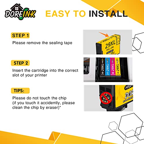 DOREINK 29XL: Cartucce d'inchiostro di alta qualità, fornisce una stampa brillante e chiara, facile da installare, non danneggerà la stampante.