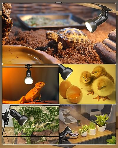 【Forte Flessibilità】La lampada riscaldante E27 per animali domestici può essere utilizzata per l'isolamento delle gabbie di allevamento degli anfibi (tartarughe, lucertole, ecc.). La lampada può oscillare verso l'alto e verso il basso con un angolo di 180° e può ruotare con un angolo di 360°. È possibile regolare in modo flessibile l'angolo di illuminazione appropriato.