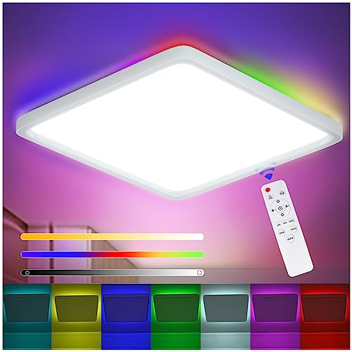 DoRight 24W LED Plafoniera, RGB Plafonier Lampada da Soffitto a Cambio Colore, Dimmerabile con Telecomando, 3200LM Colore Regolabile 3000K-6000K, IP44 Impermeabile Per Il Bagno Cucina Ufficio