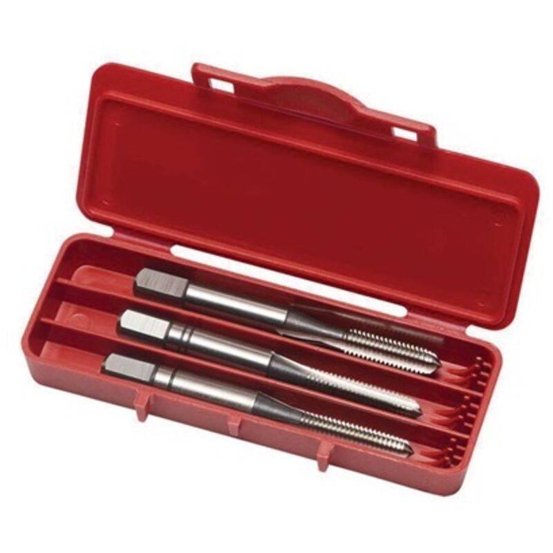 Codice: 7320760079300 Marca: DORMER. Utilizzo manuale ed a macchina Serie 3 pezzi - Scanalature diritte - Imbocco a C Acciaio Cromo Vanadio durezza HRC 62/63 Filettatura metrica ISO passo MA UNI 4535 DIN 352