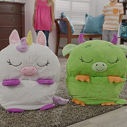 Cuscino e sacco a pelo 2 in 1 - Il cuscino da gioco perfetto! Quando è l'ora di dormire, basta tirare i piedi per rivelare un morbido sacco a pelo. Dopo il pisolino, ripiegare, chiudere i bottoni a pressione e iniziare a giocare.