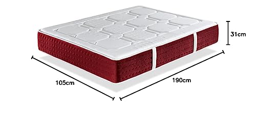 DORMISSIMO Materasso Molle Singolo 105X190 SPRING PREMIUM, Alto 31 CM, Memory Foam. 7 zone di comfort