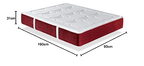 DORMISSIMO Materasso Molle Singolo 90X190 SPRING PREMIUM, Alto 31 CM, Memory Foam. 7 zone di comfort