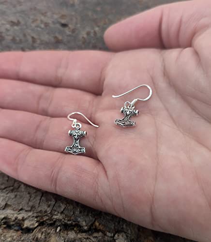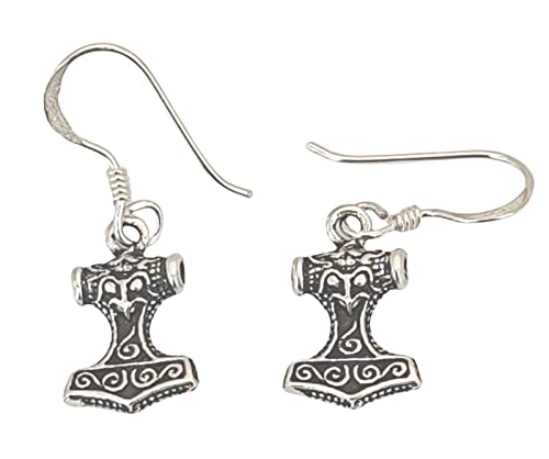 'Scritte decorative, progettata ad arte orecchini in argento sterling 925, motivo martello di Thor.