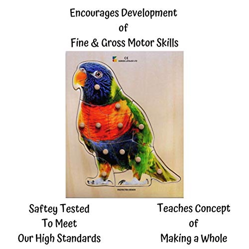 Doron Layeled Large Wooden Parrot Peg Eco Friendly, Educational, Montessori, Colourful Wood Puzzle for Toddlers. E72510250 Suitable 3 Years +, Multi