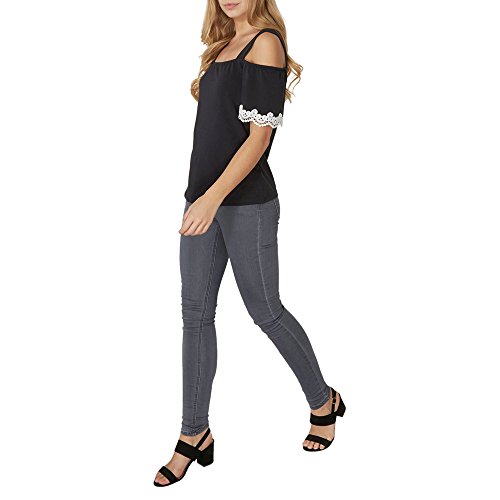 Dorothy Perkins Navy Lace Trim Cold Shoulder Top T-Shirt Donna