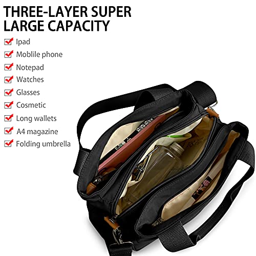Dorriso Moda Donna Borsa A Mano Tela Tracolla Borsa Messenger Borsa Impermeabile Tela Donna Viaggio Casual Sport Scuola Borsa a Tracolla, nero, L, Borsa a mano