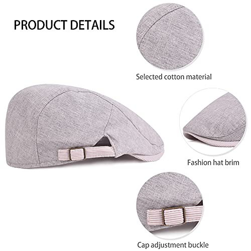 DORRISO Vintage Berretto Uomo Baschi Scozzesi Piatto Berretto Cotone Basco Newsboy Flat Cappello Uomo Viaggio Casual Vacanza Cappelli 55 per 60 CM Grigio A