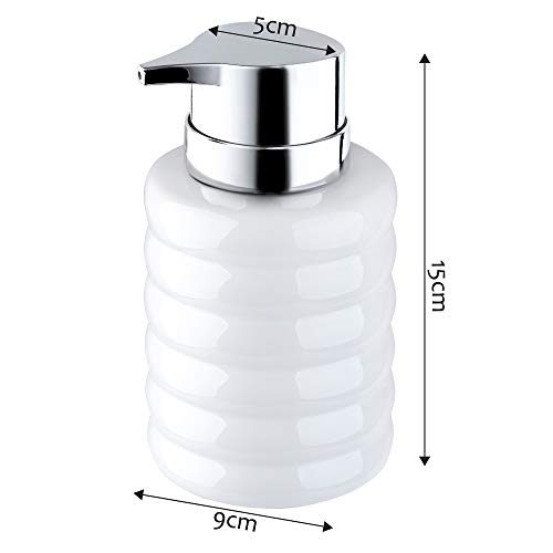 Doser di sapone kadax realizzato in ceramica, doser di sapone ricaricabile, distributore di sapone liquido con pompa di plastica, 9 x 9 x 15 cm, distributore di detergenti (bianco)