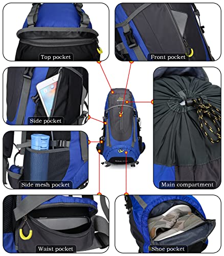Doshwin 70L Zaino da Escursionismo Trekking Campeggio Viaggio Grande per Uomo Donna (Blu)