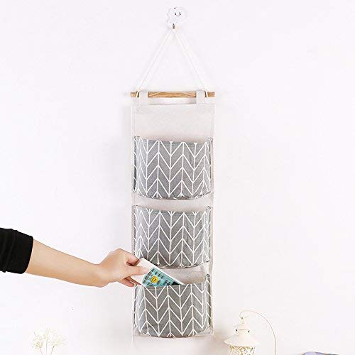 Dosige - Grazioso portaoggetti a 3 tasche da appendere alla parete, alla porta o sull'armadio, accessorio per la casa, 20 x 68 cm, Cotone e lino, Grey, 20*68 cm