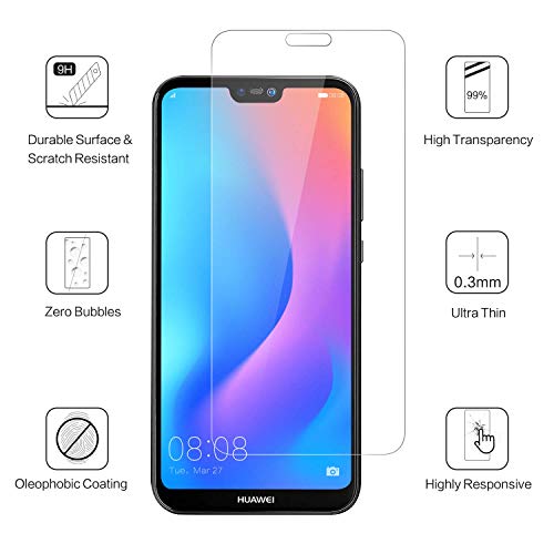 DOSMUNG Vetro Temperato per Huawei P20 Lite, Huawei P20 Lite Pellicola Protettiva 2.5D Resistenza All'urto con Durezza 9H Semplice Installazione Pellicola Huawei P20 Lite - [2 Pezzi]