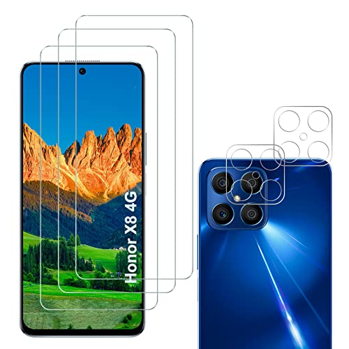 DOSNTO Vetro Temperato Honor X8 Pellicola Prottetiva Caso Amichevole [Da bordo a bordo][Senza Bolle][Anti-Graffio][Sensibile al Tatto][Ultra HD][ 3 Pellicola Protettiva + 2 Pellicola Fotocamera ]