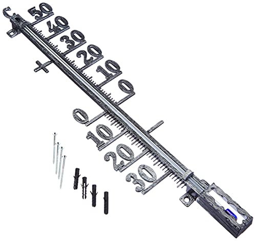 Formato grande. Il termometro in metallo di colore nero è alto 41 cm e pesa 291 grammi.
