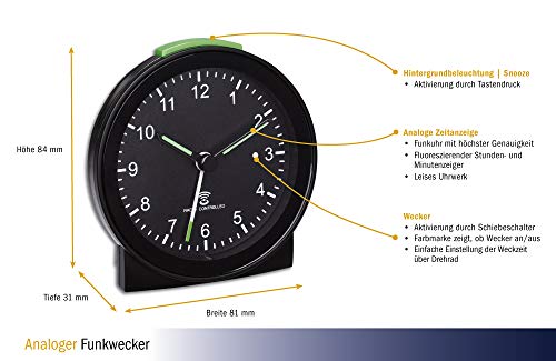 TFA Dostmann - Sveglia analogica, in plastica, 81 x 31 x 84 mm, colore: Nero