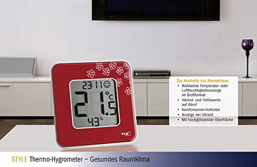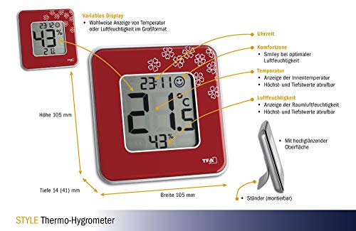 TFA Dostmann, Termo-igrometro digitale, 30.5021.05, motivo floreale, Rosso (rot mit Blumendekor)