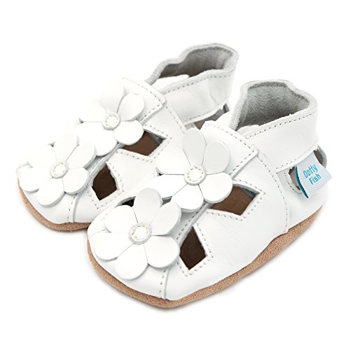 Dotty Fish Scarpine in Pelle Morbida Prima Infanzia. Antiscivolo. Sandali a Fiori Bianco. 12-18 Mesi (21 EU)