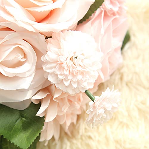 DOUBFIVSY Fiore Artificiale, 10pcs Fiori Finti Bouquet di Simulazione di Rosa Dalia Ortensia in Seta Fiori Realistici per Matrimonio Casa Giardino Feste Decorazione Cimitero (Rosa)