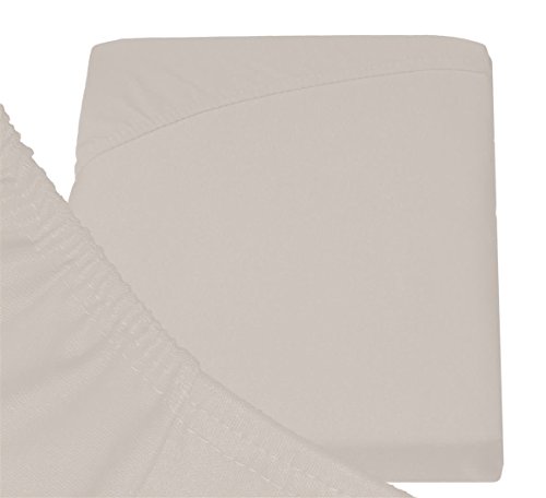 Prodotto di marca: doppio jersey - il copriletto è due volte più spesso del tessuto jersey convenzionale - densità di fibra più elevata - lunga durata robusto e più resistente - 100% cotone con protezione contro il rodaggio, piacevolmente morbido e durevole, con fascia elastica versatile - > poggia senza pieghe sul materasso