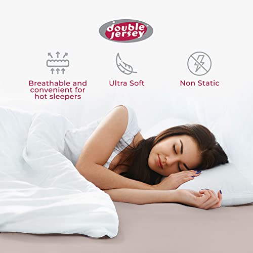 Double Jersey - Lenzuolo sotto con Angoli Elasticizzati 100% Jersey in Cotone - Lenzuola Tessuto Molto Morbido - Letto Singolo - Profondità 30cm - 100x200+30 - GRIGIO PERLA
