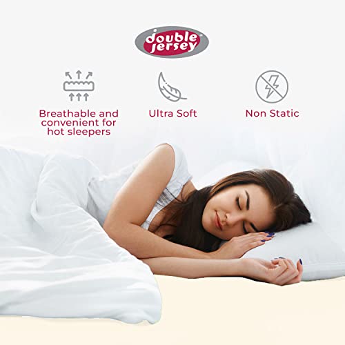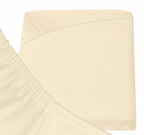 Double Jersey - Lenzuolo sotto con Angoli Elasticizzati 100% Jersey in Cotone - Lenzuola Tessuto Molto Morbido - Letto Piazza e Mezza - profondità 30cm - 120x200+30 - Écru