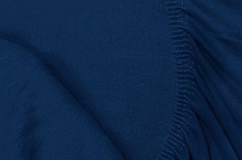 Double Jersey - Lenzuolo sotto con Angoli Elasticizzati 100% Jersey in Cotone - Lenzuola Tessuto Molto Morbido - Letto Piazza e Mezza Francese - Profondità 30cm - 140x200+30 - BLU MARINE / AZZURRO