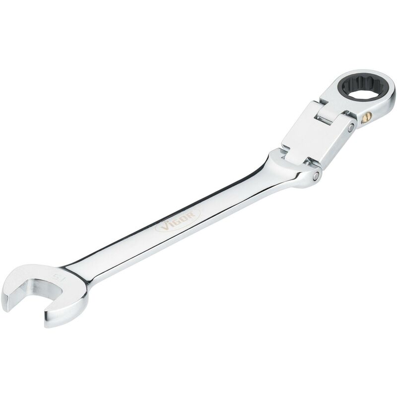 Ratchet head with double joint Box-end side with 12-point profile Presa di forza: Profilo a doppio esagono esterno, Profilo esagonale esterno Apertura chiave: 15 mm Dimensioni / Lunghezza: 228 mm Numero denti: 72 (Angolo di apertura 5°) Numero di denti 72 Unità di uscita Außen Doppelsechskant Profil, Außen Sechskant Profil Dimensioni dell'imballaggio 1