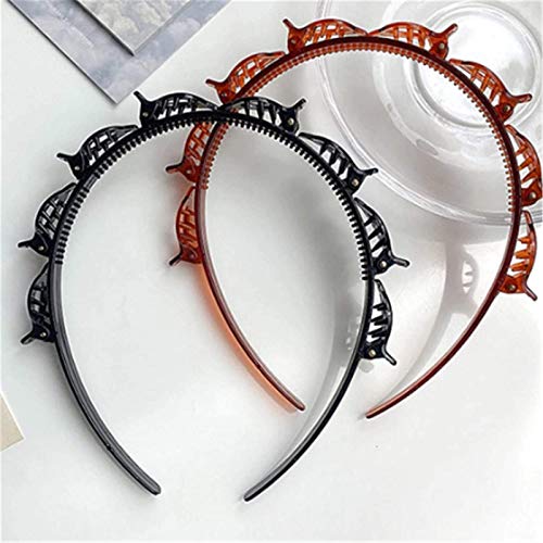 Double-layer Braided Headband Hairband Tool, Multi-Layer Hollow Woven Headband, Hair Twister Headband with Clips,double Bangs Hairstyle Hairpin Hairband, Girl's Braided Hair (Black)