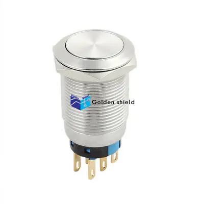 19mm 6 Pin Dia Double Pole Flat Cap Momentary Stainless Metal Push Button Switch