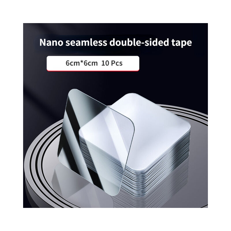 Product name:Nano double-sided tapeMaterial:AcrylicSpecification:6cm*6cm/Color:TransparentScope of application:Kitchen, Bathroom, Car, OfficeCharacteristic:No punching, No trace glueNotes:Manual measurement, please allow slight errors on size.The color may exist a slight difference due to different screen displays.