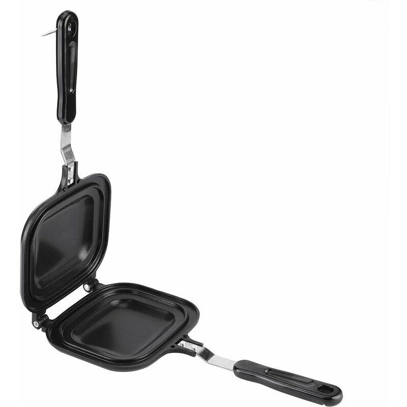 PADELLA A DOPPIA FACCIATA - La tostiera è realizzata in materiale di alluminio di alta qualità, resistente alle alte temperature e robusta. Bastano pochi minuti e puoi ottenere la deliziosa torta waffle o sandwich, è un buon aiuto per la preparazione della colazione., 【Antiscottatura】 La macchina per waffle sandwich ha 2 manici in acciaio inossidabile con guscio in plastica, che hanno un buon effetto antiscottatura, comodo da impugnare e non facile da deformare.,Perfetto aiuto in cucina: gancio per appendere e design antiaderente, il toast maker è facile e comodo da riporre. Padella perfetta per cibi deliziosi e sani. 【FACILE DA USARE】 Design a staffa fissa, facile da aprire e chiudere liberamente, comodo da usare. Specifiche: < br> Condizione: 100% nuovo di zecca Tipo di elemento: padella Materiale: alluminio Colore: nero Dimensioni: circa 36,5 x 16 x 3,5 cm / 14,4 x 6,3 x 1,4 pollici (L x P x A) Peso: circa 600 g / 21,2 once Contenuto della confezione: 1 x padella