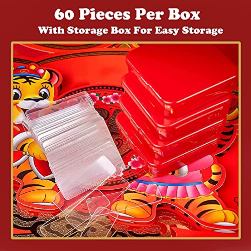 Double Sided Sticky Tape,Transparent Reusable Adhesive Tape Double Sided Mounting Strong Sticky Wall Tape Strips Without Cropping No Residue for Carpet Photos Posters 60 Pcs