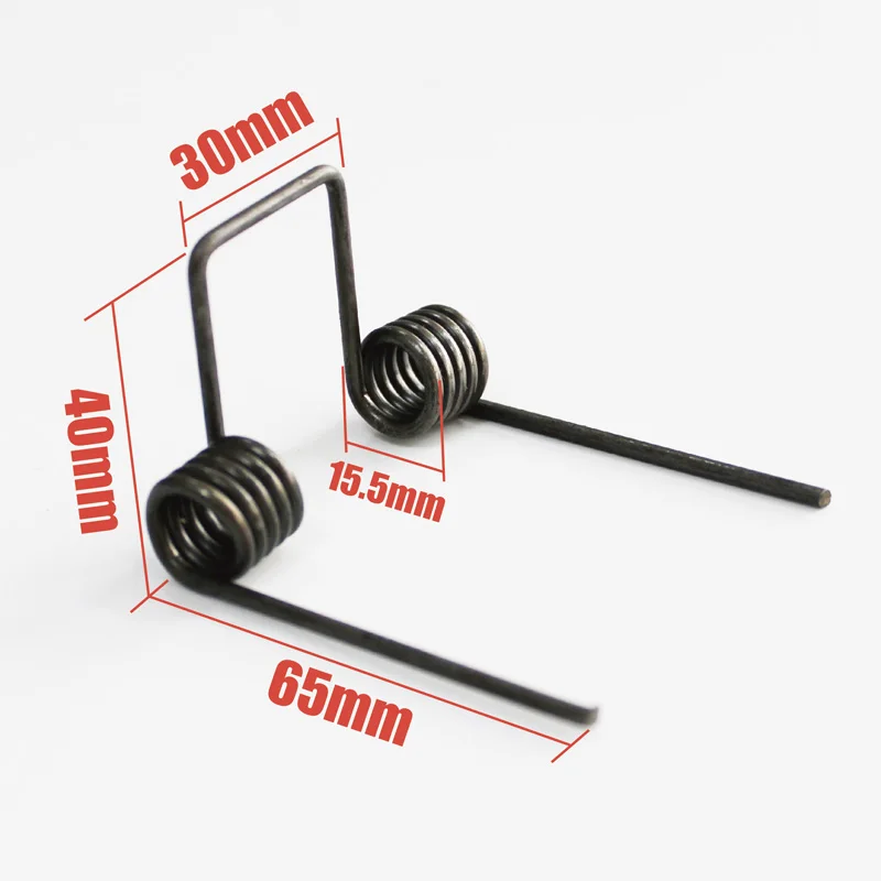 Double torsion spring,wire dia 2.5mm OD. 15.5mm feet length 65mm 5 coils