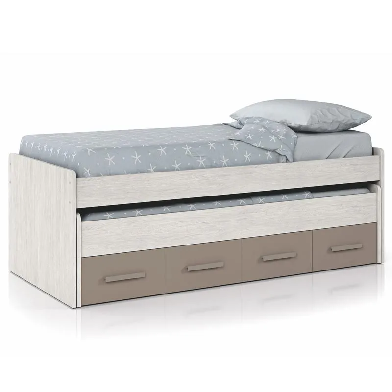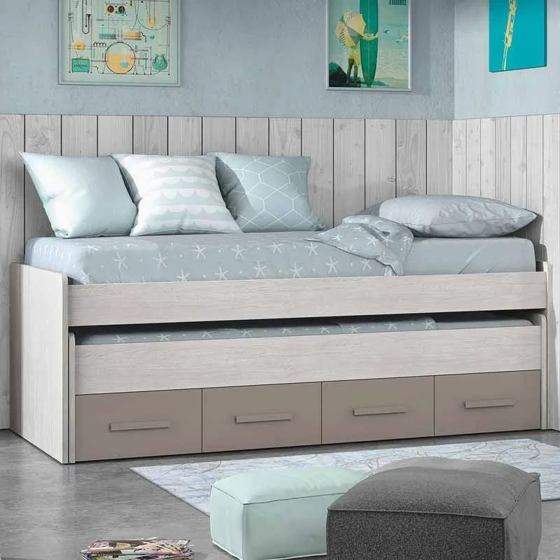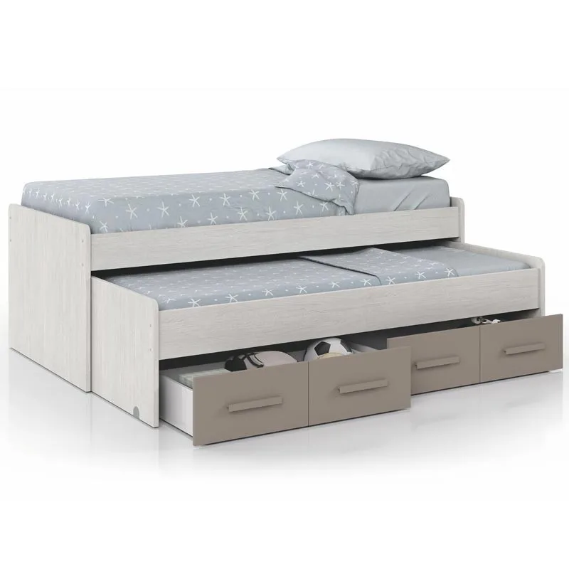 Double bed Youth 2 beds and 2 drawers, white finish Alps and basalt, dimensions 198x69x96 cm Background