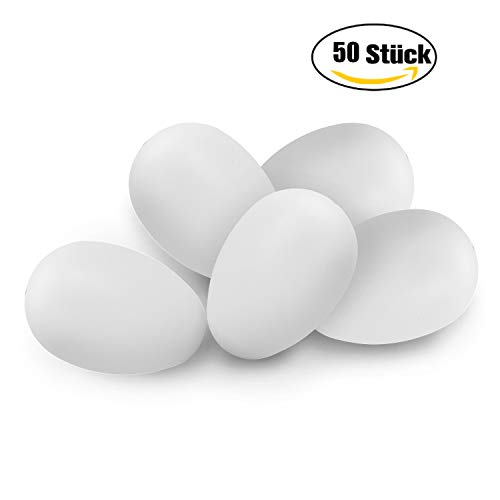 Doublink 50 Uova Decorative pasquali [6 cm, plastica] + 50 Ganci per Uova di Pasqua + 10 spiedini per marmellata o dipingere, Decorazione Pasquale