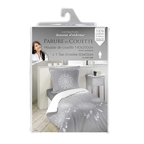 Douceur d' Interno Indila Parure Copripiumino 2 P 57 Fili, Cotone, Multicolore, 200 x 140 cm