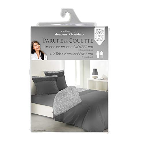 Douceur d' interno Parure Copripiumino Matrimoniale, Cotone, Antracite, 220 x 240 cm