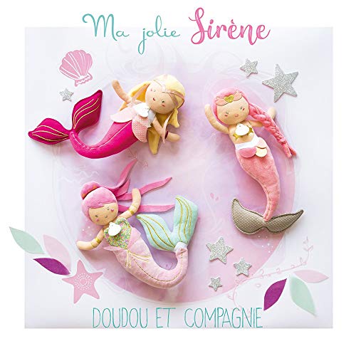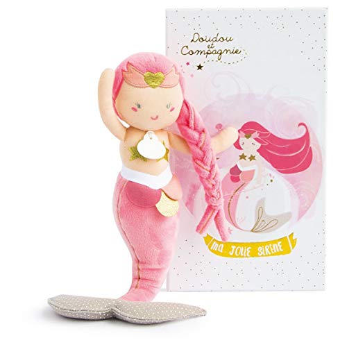 Doudou et Compagnie DC3404 - Bambola in tessuto di peluche a forma di sirena, 30 cm, rosa