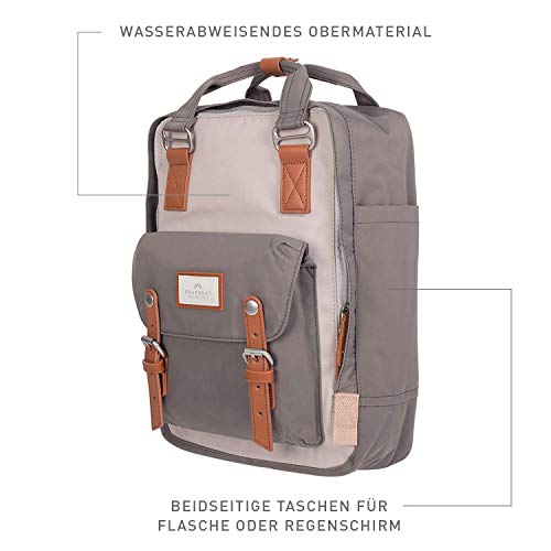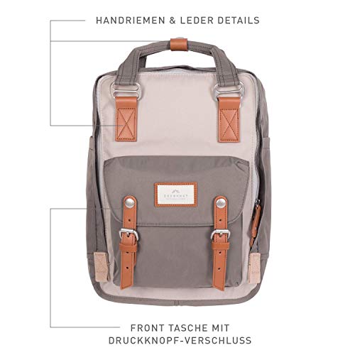 Design sofisticato e comfort elevato grazie alle spalline imbottite e una grande tasca frontale con cinghie in pelle e bottoni automatici: ideale per studenti: interni e studenti: interni con scomparto per laptop da 14".