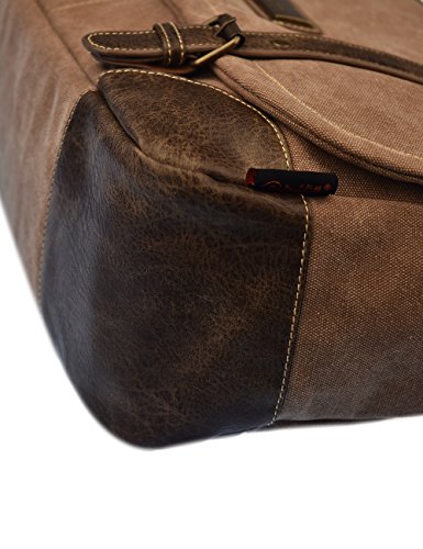 Viene adottato il canvas vintage di alta qualita'. Il manico e la chiusura a bottone vengono fatti da cuoio. Da un'impressione alla moda e speciale. Bella cucitura e qualita' alta che ettagli delicati assicurano. Il fondo in cuoio protegge bene la cartella.