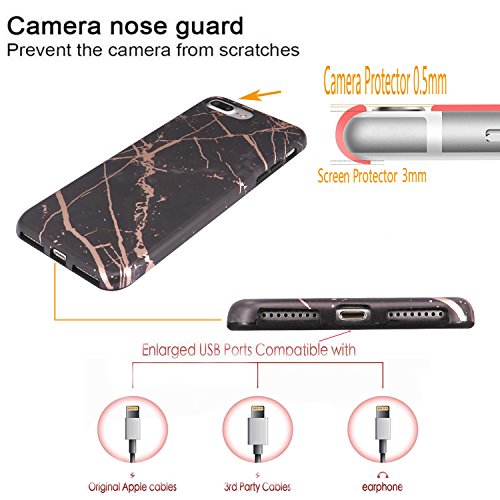 DOUJIAZ Cover iPhone 7 Plus, TPU Gel Silicone Protettivo Skin Custodia Protettiva Shell Case Cover per Apple iPhone 7 Plus - Nero Oro Rosa Gold Marmo Design