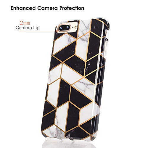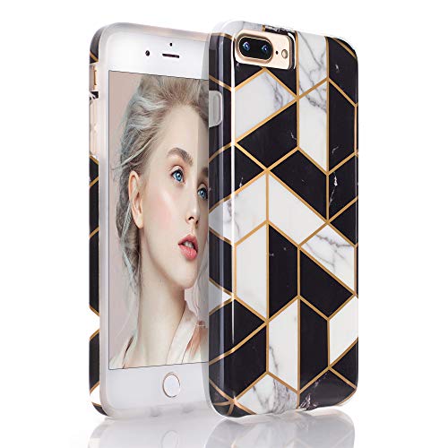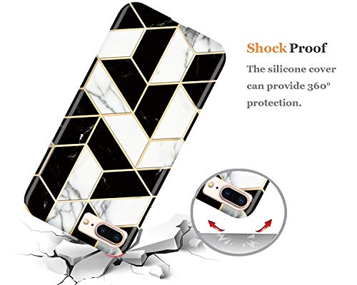 Doujiaz, custodia compatibile con iPhone 7 Plus, custodia per iPhone 8 Plus, design marmorizzato trasparente, custodia morbida in silicone TPU per iPhone 7 Plus (2016) / iPhone 8 Plus (2017) Black grid