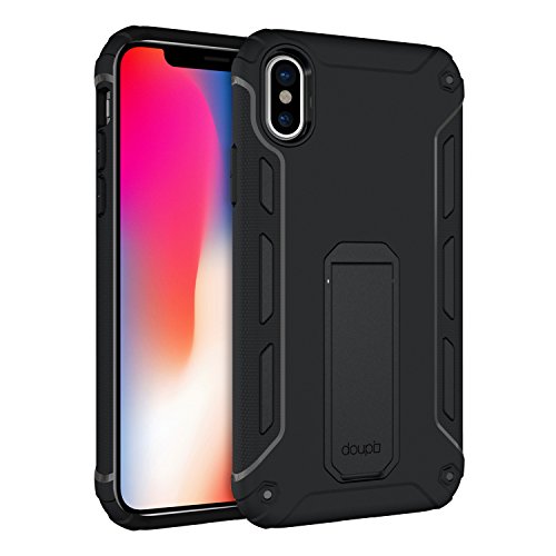 Doupi Ultra Kickstand Custodia per iPhone XS/X (iPhone 10s / 10) 5,8 Pollici con Supporto Integrato Coperchio apribile Protezione Copertina, Nero