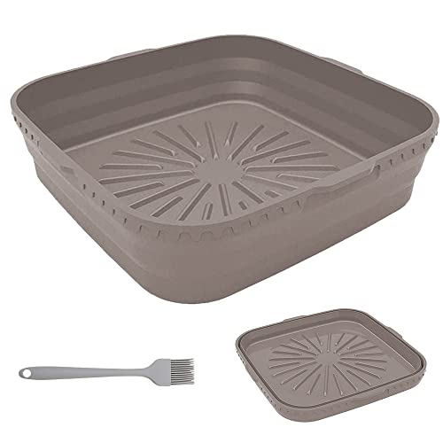DOUSELLA Cestino per Friggitrice ad Aria in Silicone Pieghevole Teglia in Silicone con Maniglia per Friggitrice ad Aria Riutilizzabile Quadrata Accessori per Friggitrice ad Aria - Grigio, 20.8 CM