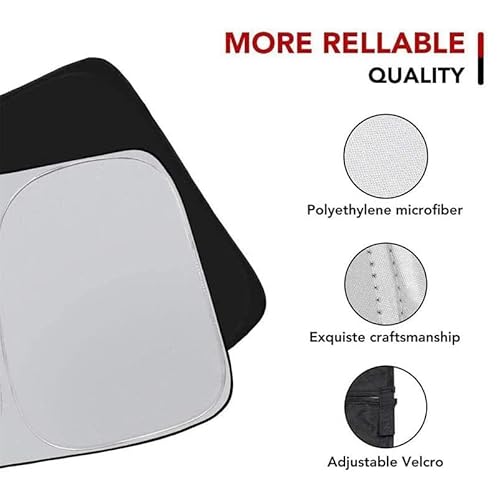 【Alta qualità】 Il nostro parasole per parabrezza per auto è realizzato in materiale poliestere resistente di alta qualità con copertura riflettente, blocca persino qualsiasi abbagliamento attorno ai bordi dello schermo con un'esclusiva protezione per bordi flessibile.