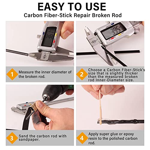 BASTONE IN FIBRA DI CARBONIO DUREVOLE E LEGGERO: robustezza e leggerezza. Lo stick in fibra di carbonio è realizzato in carbonio, che è molto forte e resistente. Viene utilizzato per riparare le canne da pesca rotte.