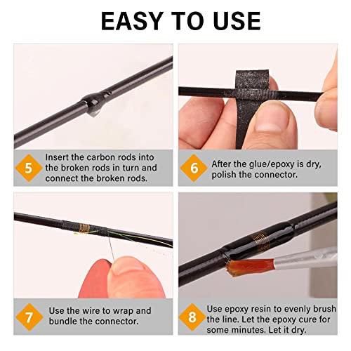 ENTRAMBI PER CANNA DA SPINNING & CANNA DA CASTING: Ideale sia per le canne da spinning che per quelle da casting. Dopo aver riparato la canna con la fibra di carbonio, la sensibilità della canna non è influenzata dal bastoncino in fibra di carbonio.