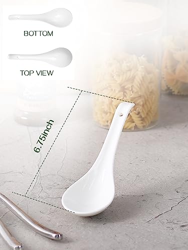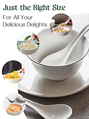 Dowan Set di 6 cucchiai da minestra asiatici, cucchiai da minestra cinesi Wonton, cucchiai di ramen in ceramica per riso, spaghetti, bianco